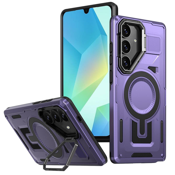 For Samsung Galaxy A16 5G Shield Hollow Frame Holder MagSafe Phone Case(Purple)