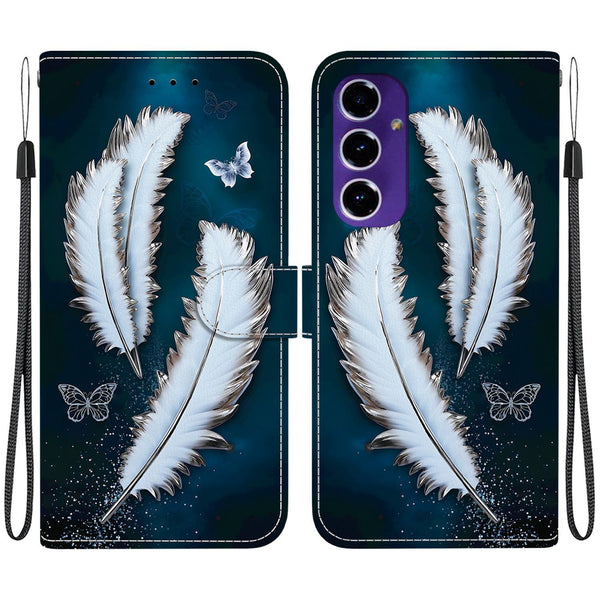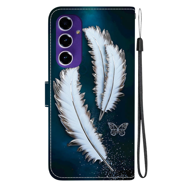 For Samsung Galaxy A16 Crystal Texture Colored Drawing Leather Phone Case(White Butterfly Feathers)
