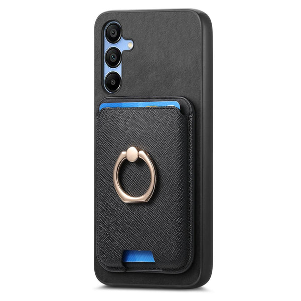 For Samsung Galaxy A16 Retro Cross Leather Ring Vertical Insert Card Bag MagSafe Phone Case(Black)