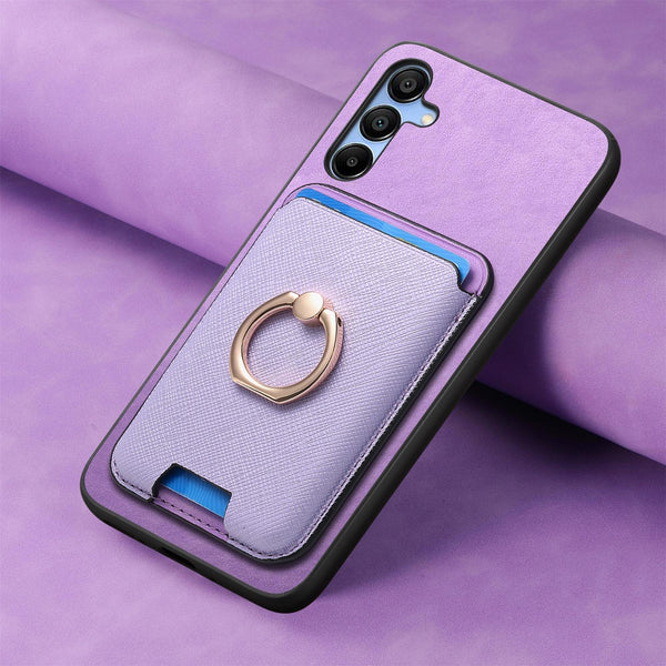 For Samsung Galaxy A16 Retro Cross Leather Ring Vertical Insert Card Bag MagSafe Phone Case(Purple)