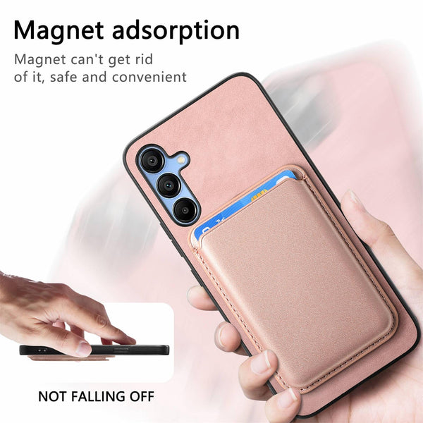For Samsung Galaxy A16 Retro Magsafe Card Bag PU Back Cover Phone Case(Pink)