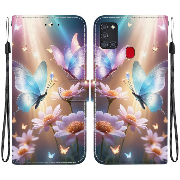 For Samsung Galaxy A21s Crystal Texture Colored Drawing Leather Phone Case(Butterfly Love Flower)