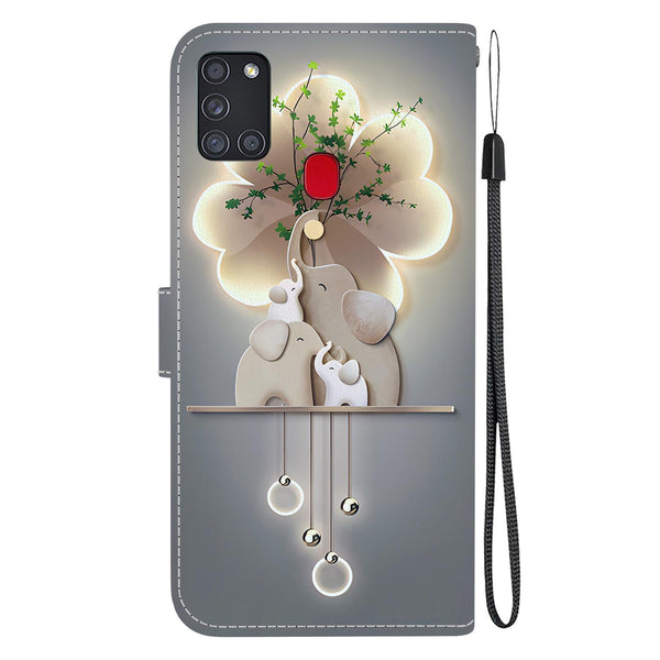 For Samsung Galaxy A21s Crystal Texture Colored Drawing Leather Phone Case(Elephants)