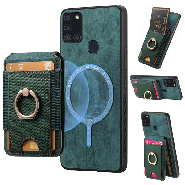 For Samsung Galaxy A21s Retro Splitable Magnetic Stand Card Bag Leather Phone Case(Green)