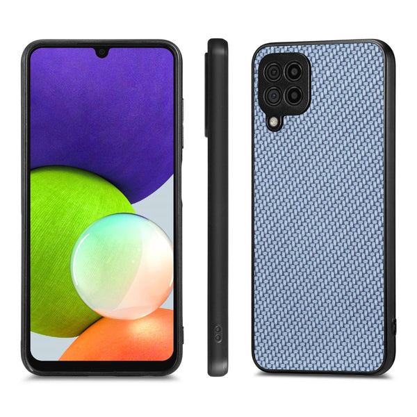 For Samsung Galaxy A22 4G Carbon Fiber Texture Leather Back Cover Phone Case(Blue)