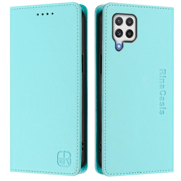 For Samsung Galaxy A22 4G RC01 Dual-Folded Magnetic Suction RFID Leather Phone Case(Mint Green)