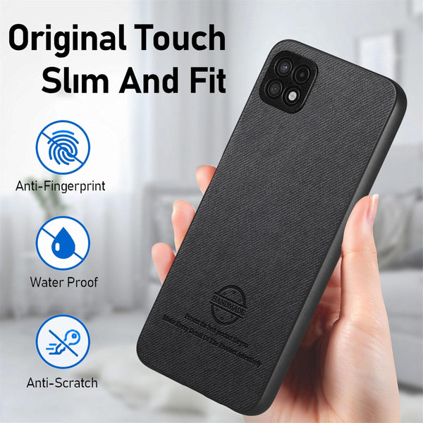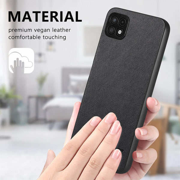 For Samsung Galaxy A22 4G Twill Fabric Leather Skin Back Phone Case(Black)