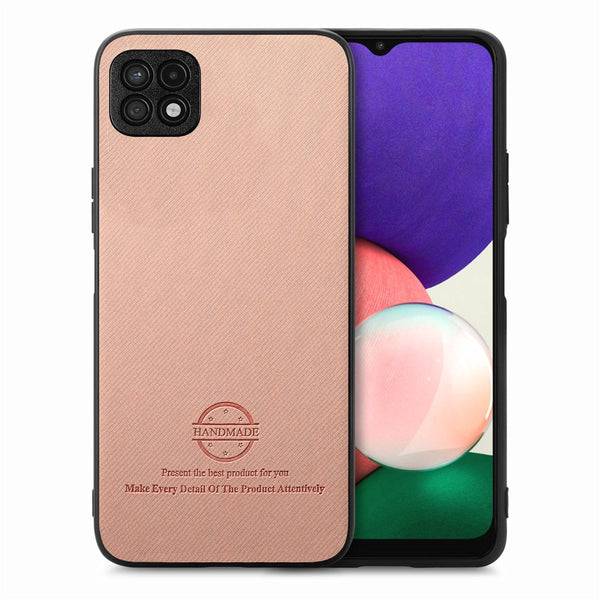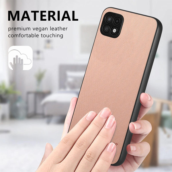 For Samsung Galaxy A22 4G Twill Fabric Leather Skin Back Phone Case(Pink)