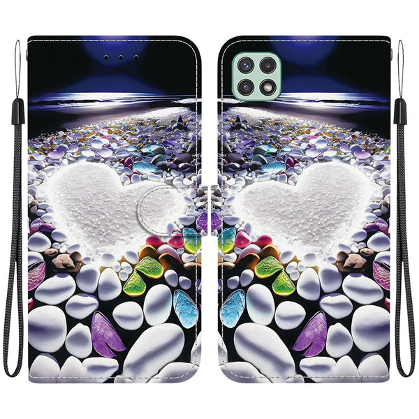 For Samsung Galaxy A22 5G Crystal Texture Colored Drawing Leather Phone Case(Heart Shaped)