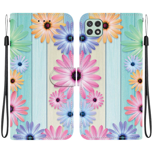 For Samsung Galaxy A22 5G Crystal Texture Colored Drawing Leather Phone Case(Sunflowers)