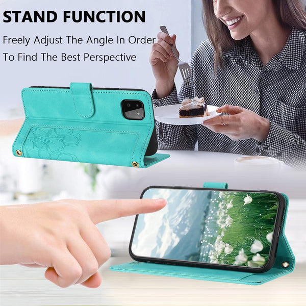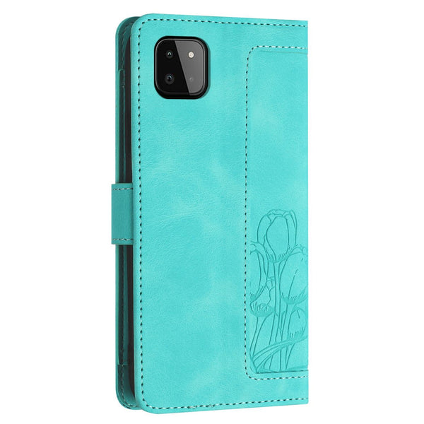 For Samsung Galaxy A22 5G Tulips Embossed Leather Phone Case with Lanyard(Green)