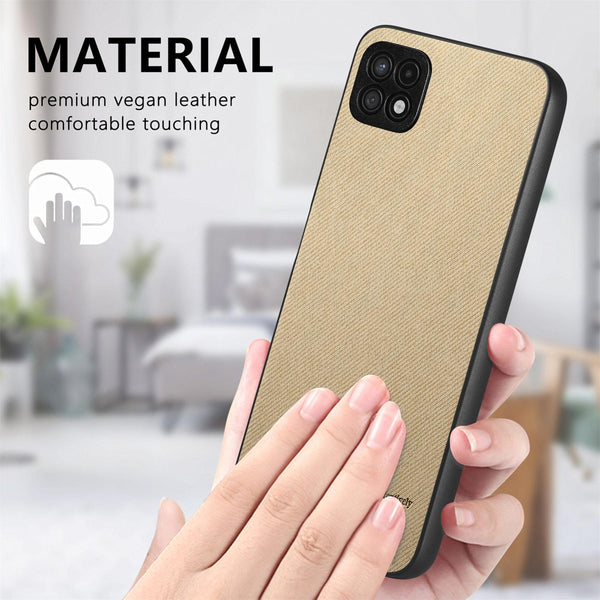 For Samsung Galaxy A22 5G Twill Fabric Leather Skin Back Phone Case(Khaki)