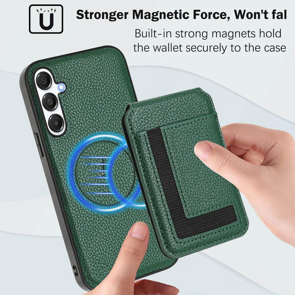 For Samsung Galaxy A24 4G CX01 Detachable Magsafe Magnetic Card Bag Phone Case(Peacock Green)