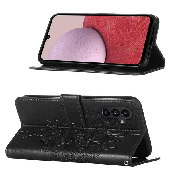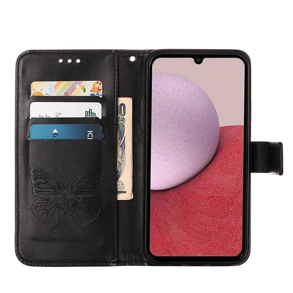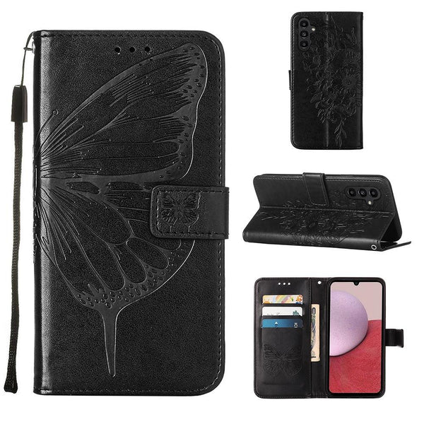 For Samsung Galaxy A24 4G Embossed Butterfly Leather Phone Case(Black)