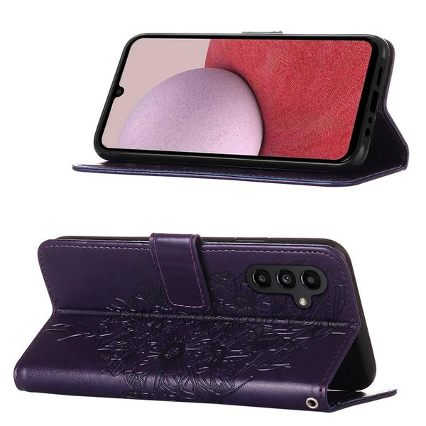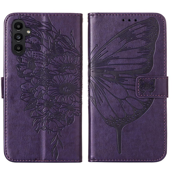 For Samsung Galaxy A24 4G Embossed Butterfly Leather Phone Case(Dark Purple)