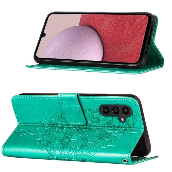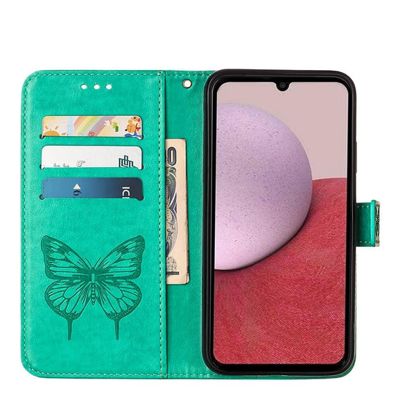 For Samsung Galaxy A24 4G Embossed Butterfly Leather Phone Case(Green)
