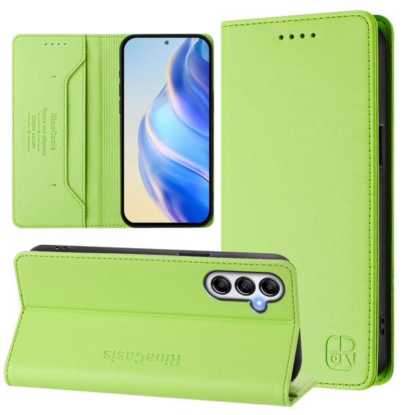 For Samsung Galaxy A24 4G Global RC01 Dual-Folded Magnetic Suction RFID Leather Phone Case(Grass Green)