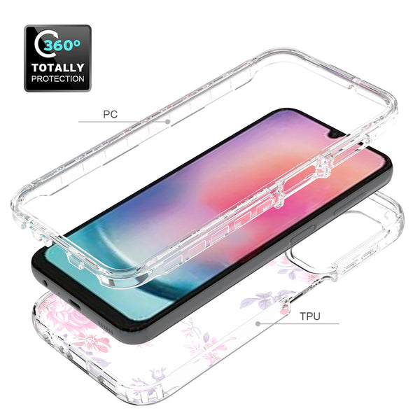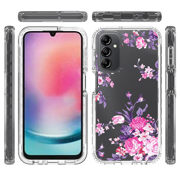 For Samsung Galaxy A24 5G / 4G Transparent Painted Phone Case(Pink Flower)