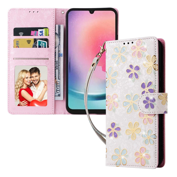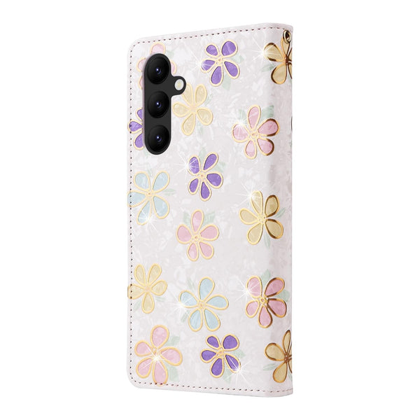 For Samsung Galaxy A24 5G Bronzing Painting RFID Leather Phone Case(Bloosoming Flower)