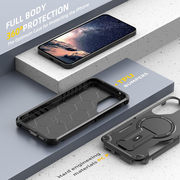 For Samsung Galaxy A25 5G Armor MagSafe Holder PC Hybrid TPU Phone Case(Black)