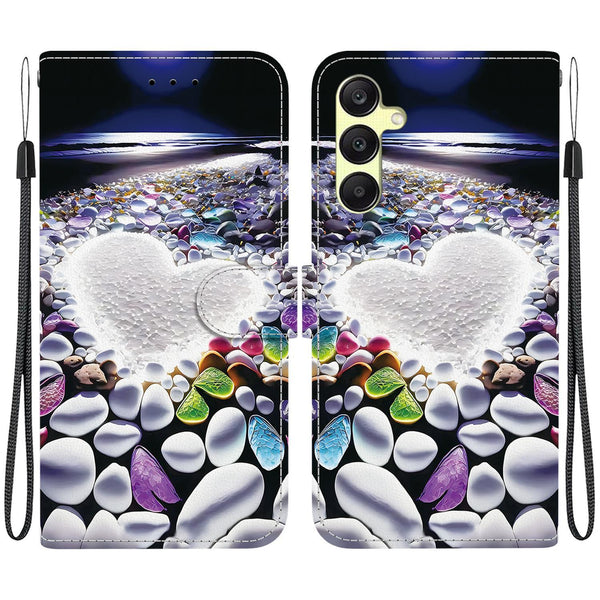 For Samsung Galaxy A25 5G Crystal Texture Colored Drawing Leather Phone Case(Heart Shaped)