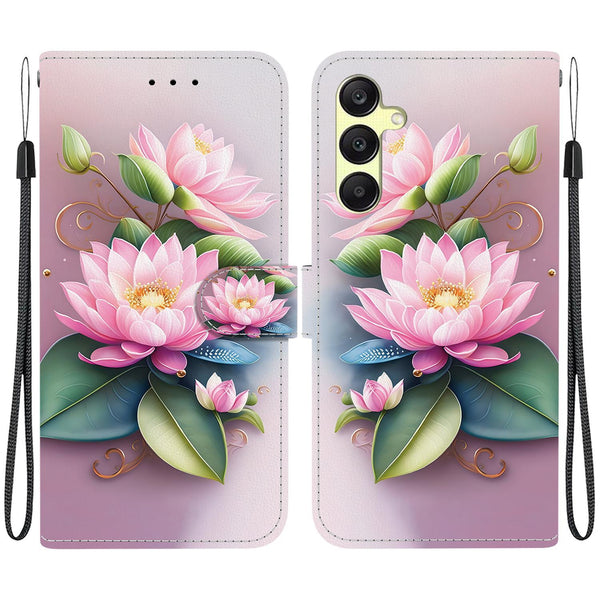 For Samsung Galaxy A25 5G Crystal Texture Colored Drawing Leather Phone Case(Lotus)