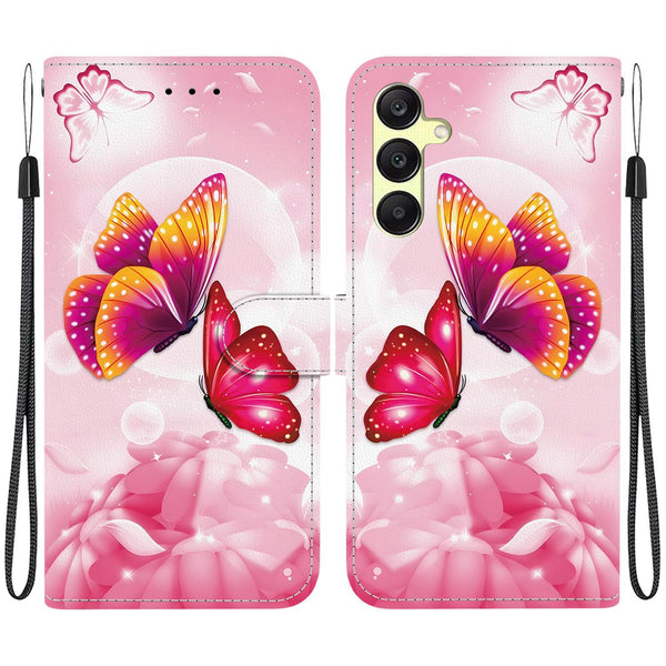 For Samsung Galaxy A25 5G Crystal Texture Colored Drawing Leather Phone Case(Pink Butterflies)