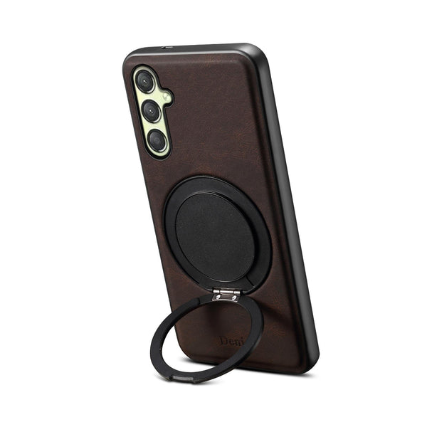 For Samsung Galaxy A25 5G Denior A14 Skin Feel Rotating Holder MagSafe Phone Case(Brown)