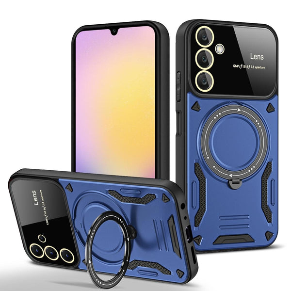 For Samsung Galaxy A25 5G Global Large Window MagSafe Holder Phone Case(Blue)