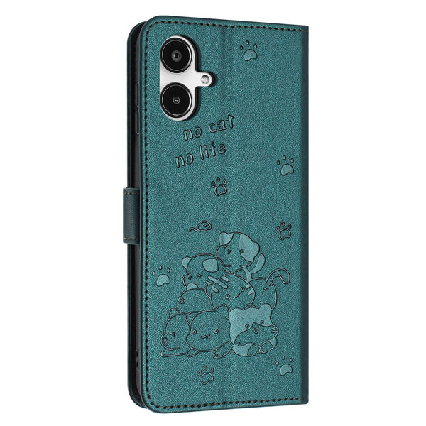 For Samsung Galaxy A25 5G Japan Embossed Kitten Phone Leather Case with Lanyard(Dark Green)