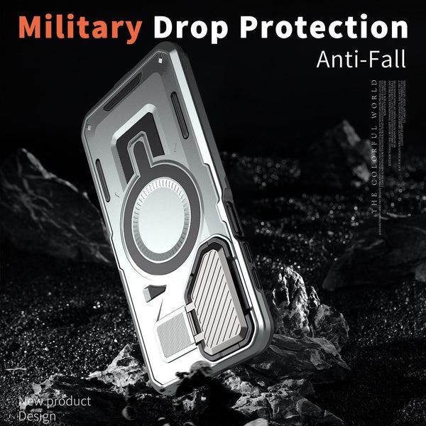 For Samsung Galaxy A25 5G Shield Frame Holder MagSafe Phone Case(Grey)