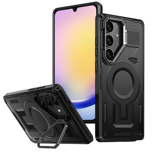 For Samsung Galaxy A25 5G Shield Hollow Frame Holder MagSafe Phone Case(Black)