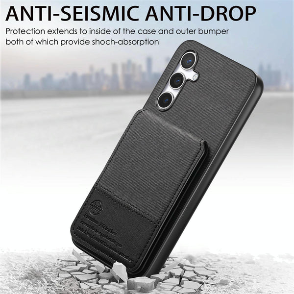 For Samsung Galaxy A25 5G Twill Fabric Leather Vertical Flip RFID Card Bag Phone Case(Black)