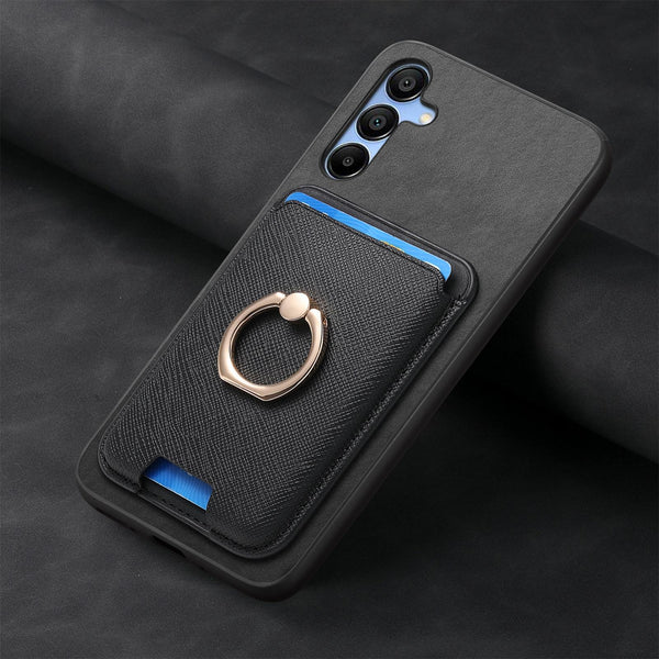 For Samsung Galaxy A25 Retro Cross Leather Ring Vertical Insert Card Bag MagSafe Phone Case(Black)