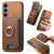 For Samsung Galaxy A25 Retro Cross Leather Ring Vertical Insert Card Bag MagSafe Phone Case(Brown)
