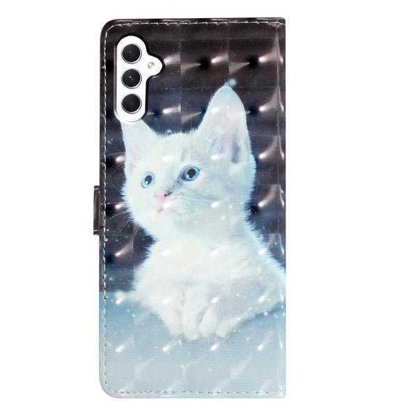 For Samsung Galaxy A26 5G 3D Pattern Leather Phone Case(White Cat)