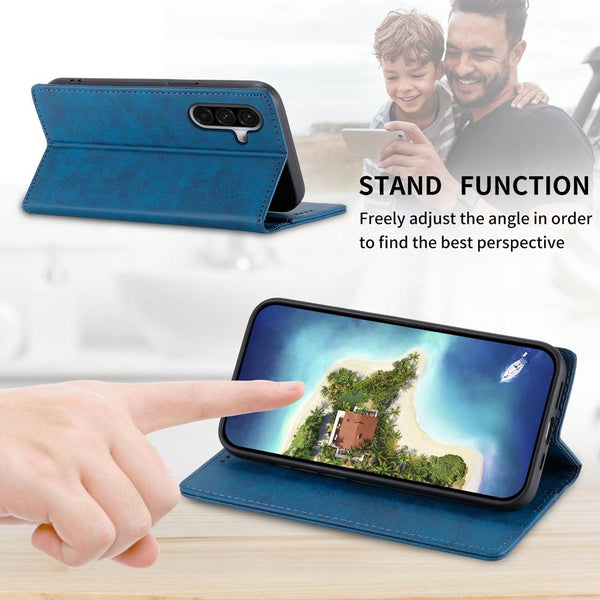 For Samsung Galaxy A26 5G Business Solid Color Magnetic RFID Leather Phone Case(Blue)