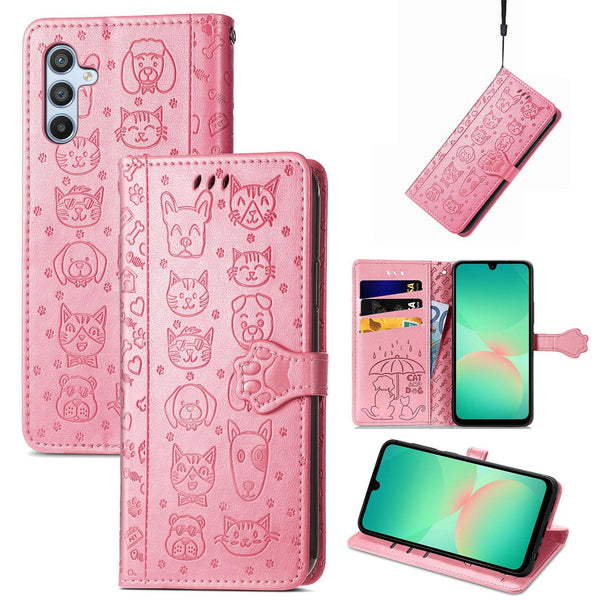 For Samsung Galaxy A26 5G Cat and Dog Embossed Leather Phone Case(Pink)