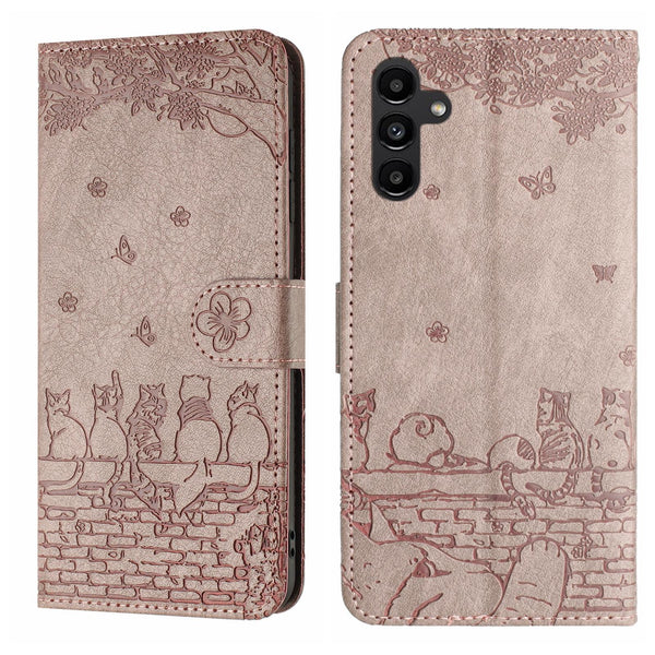 For Samsung Galaxy A26 5G Cat Embossing Pattern Leather Phone Case with Lanyard(Grey)