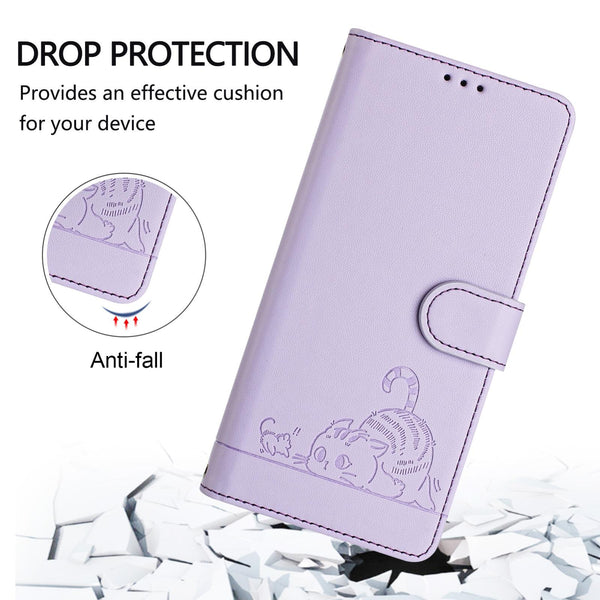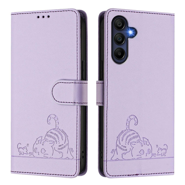 For Samsung Galaxy A26 5G Cat Rat Embossed Pattern RFID Leather Phone Case with Lanyard(Purple)