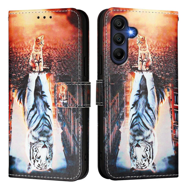 For Samsung Galaxy A26 5G Colored Drawing Pattern Plain Weave Leather Phone Case(Cats And Tigers)
