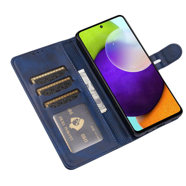 For Samsung Galaxy A26 5G Embossed Happy Cat Pattern Flip Leather Phone Case(Blue)