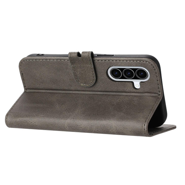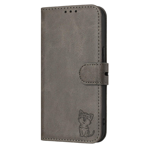 For Samsung Galaxy A26 5G Embossed Happy Cat Pattern Flip Leather Phone Case(Grey)
