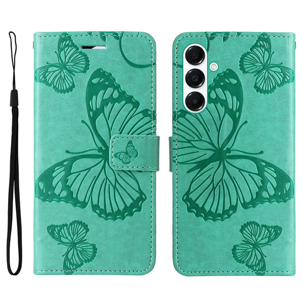 For Samsung Galaxy A26 5G Global 3D Butterfly Embossed Pattern Flip Leather Phone Case(Green)