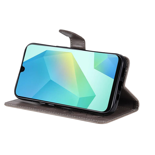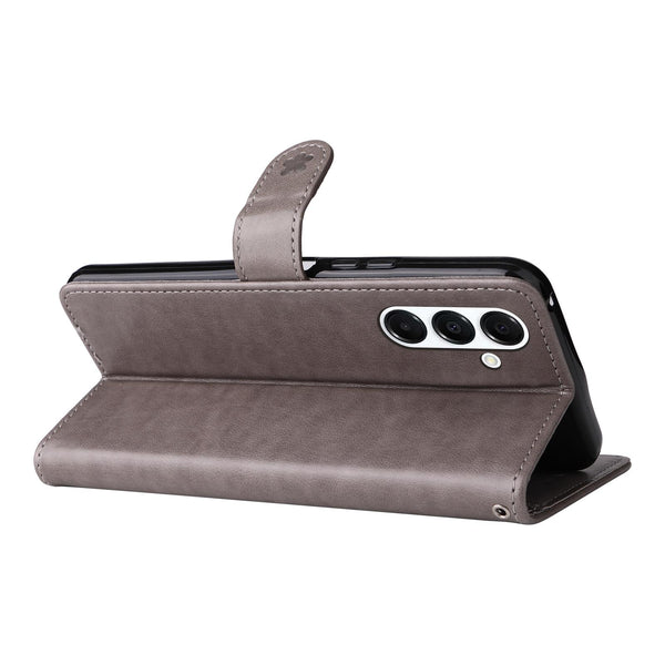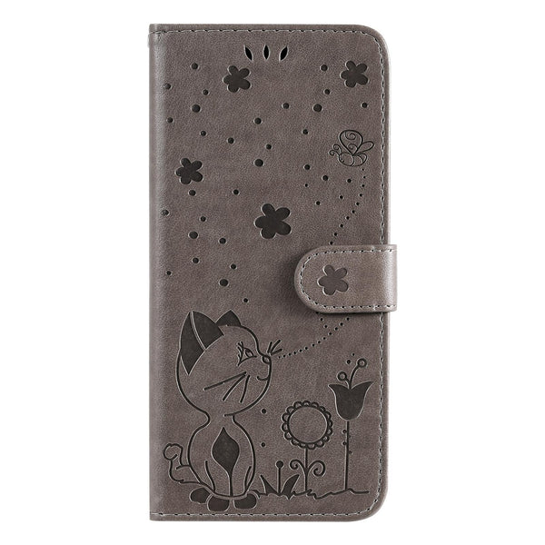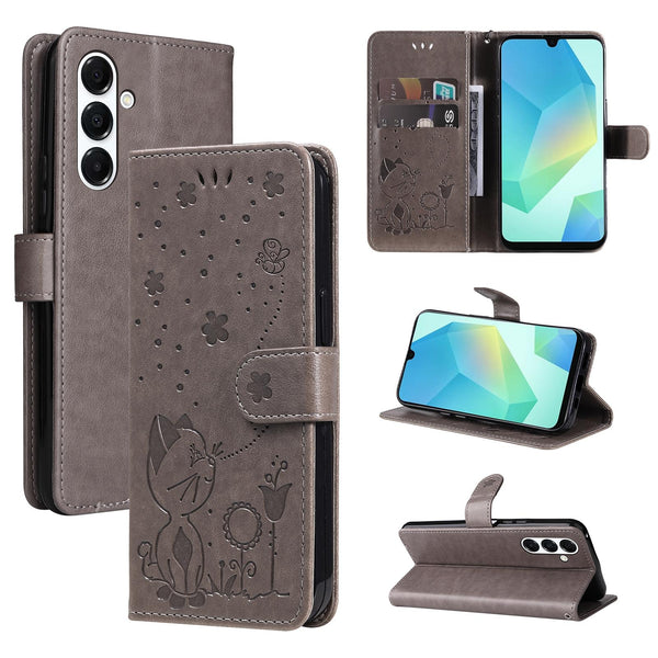 For Samsung Galaxy A26 5G Global Cat Bee Embossing Pattern Shockproof Leather Case(Grey)