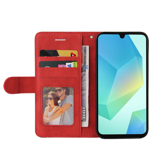 For Samsung Galaxy A26 5G Global Dual-color Splicing Flip Leather Phone Case(Red)