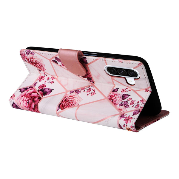 For Samsung Galaxy A26 5G Marble Bronzing Stitching Leather Phone Case(Rose Gold)