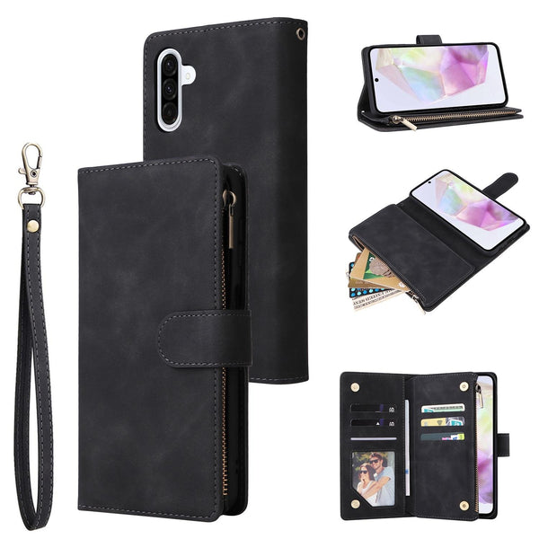 For Samsung Galaxy A26 5G Multifunctional Frosted Zipper Wallet Leather Phone Case(Black)