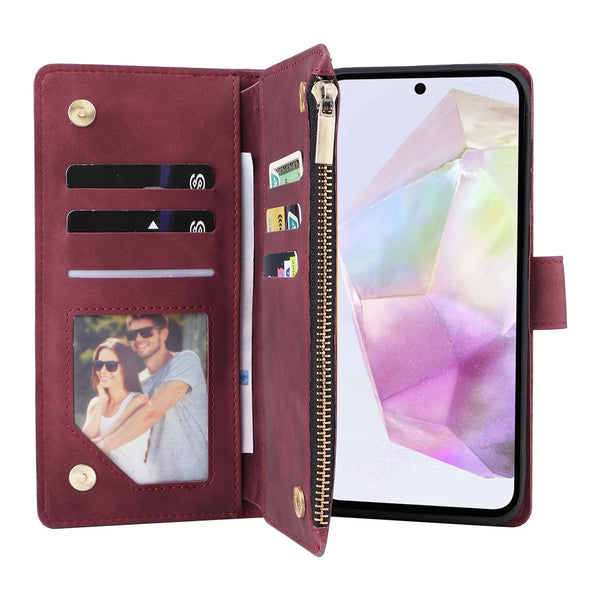 For Samsung Galaxy A26 5G Multifunctional Frosted Zipper Wallet Leather Phone Case(Wine Red)