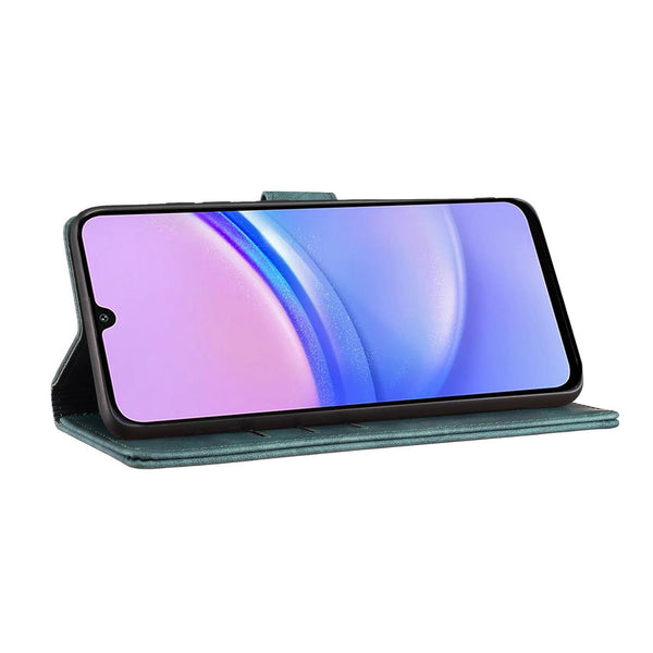 For Samsung Galaxy A26 5G Pen Heart Cat Embossed Leather Phone Case(Green)